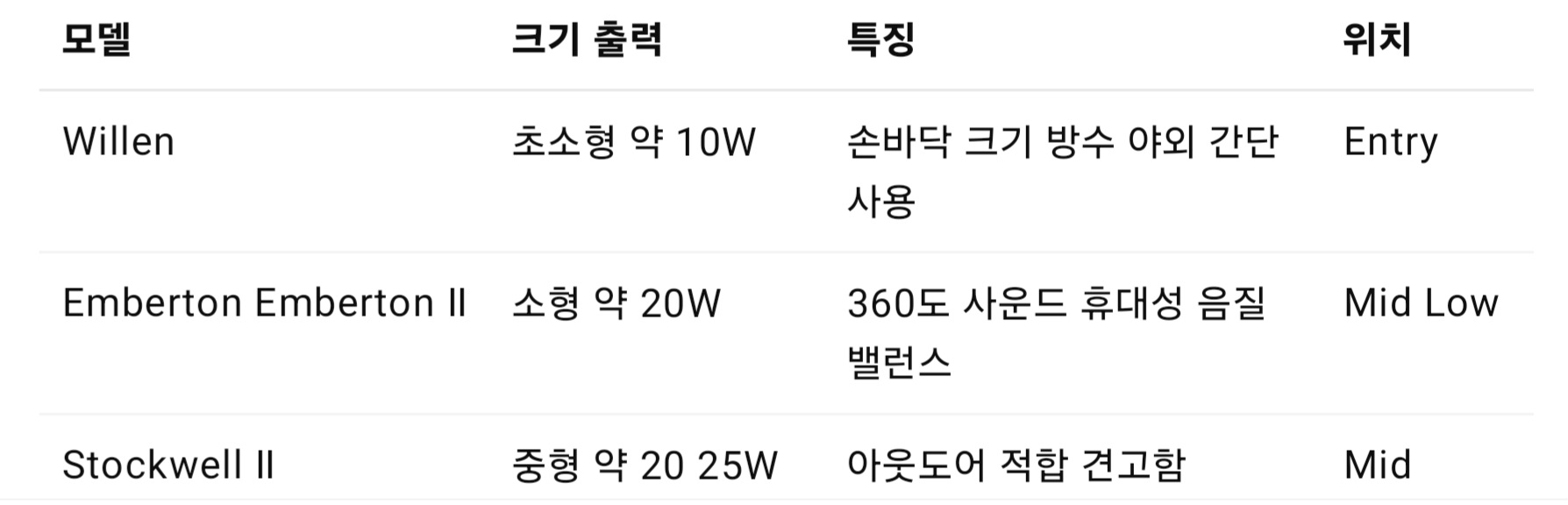 마샬(Marshall) 블루투스 스피커는 디자인은 클래식 앰프 감성을 유지하면서, 크기와 출력에 따라 여러 라인업(등급)으로 나뉘어요. 대표적으로는 홈 라인업과 포터블 라인업 두 가지로 구분됩니다.